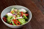 Tender, hand-wrapped dumplings filled with seasoned ground meat and vegetables, served in a fiery chili oil sauce with Sichuan peppercorns, garlic, and scallions. These mouth-watering parcels deliver a perfect balance of savory filling and tongue-tingling heat that builds with each bite. Garnished with fresh cilantro and served piping hot.
